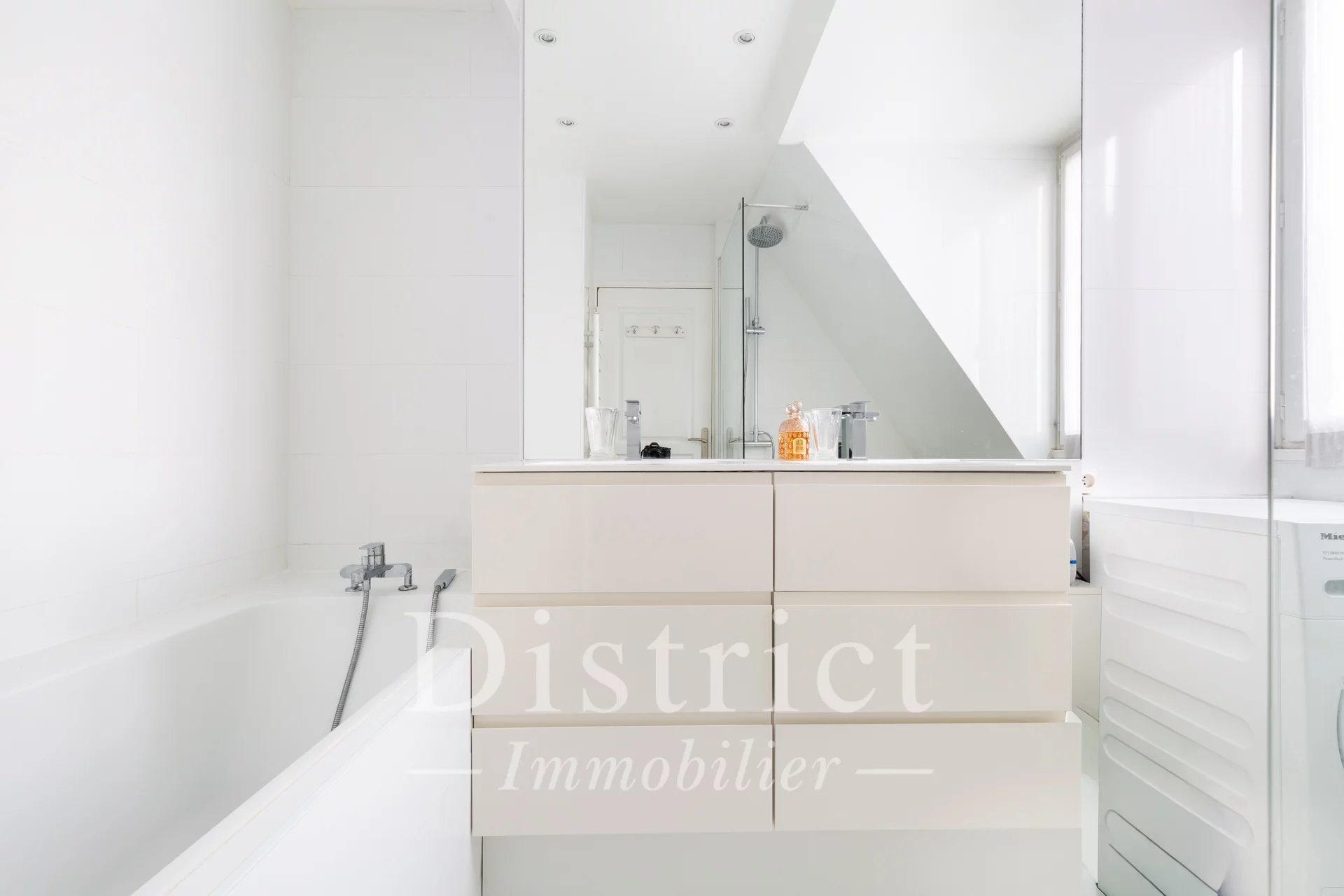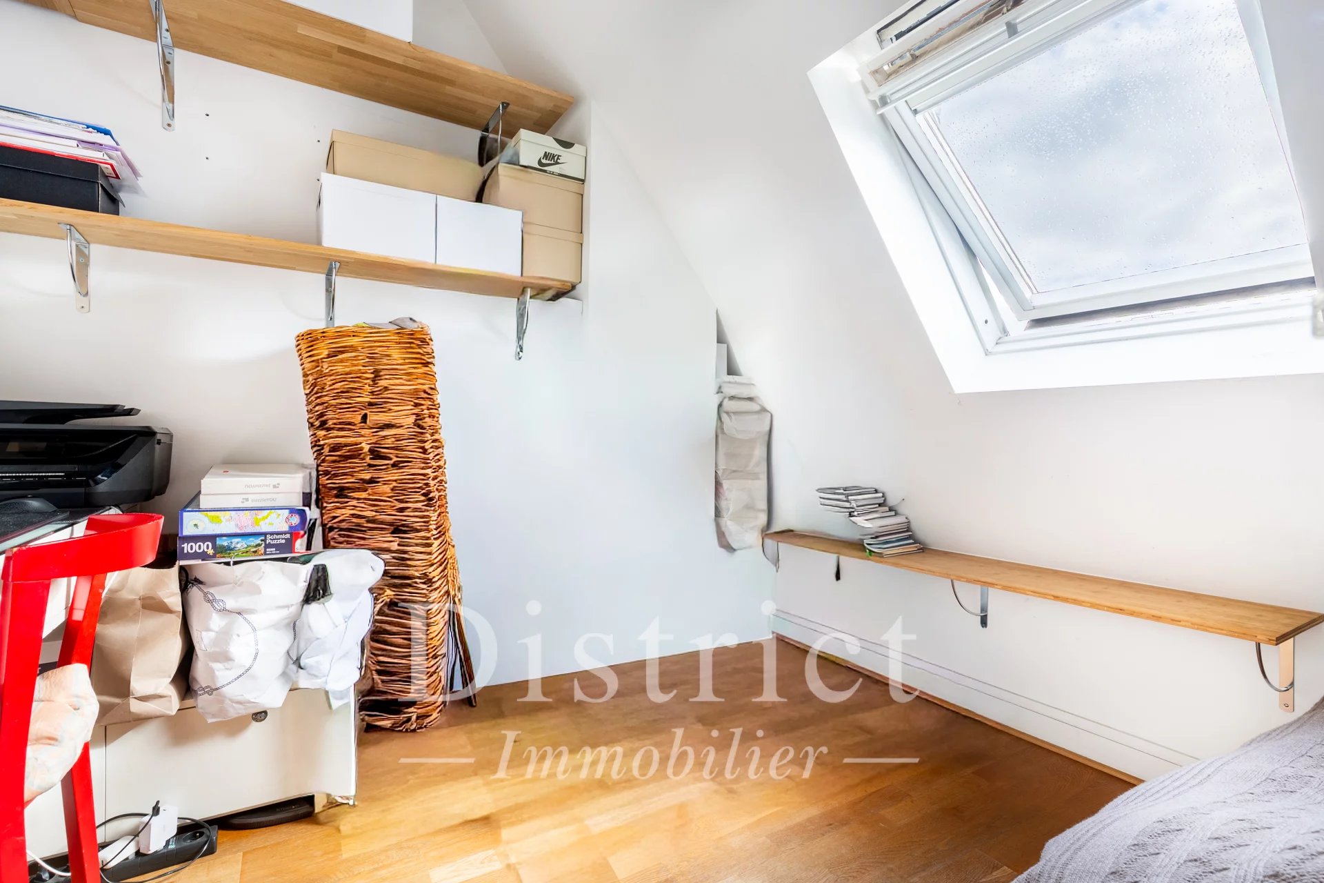 À deux pas du Parc Monceau et de la place des Ternes, aux derniers étages avec ascenseur d'un magnifique immeuble en pierre de taille, nous vous proposons à la vente un appartement de 134.46 m² au sol (dont 113.62 m² loi carrez) en duplex. Il se compose d'une entrée, un grand séjour orienté Sud-Est sur cour au calme, une cuisine dinatoire, trois chambres à coucher, une salle de bains, deux WC séparés et beaucoup de rangements. Idéal pour une famille à la recherche d'un appartement à l'esprit maison, au calme absolu et très lumineux ! Proche de tous les commerces, des écoles et des transports. Parking possible à la vente en sus du prix.
