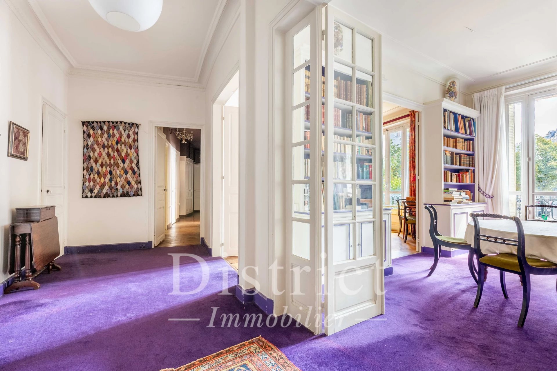 A deux pas du Champs de Mars et de la Tour Eiffel, bel appartement familial 6 pièces de 170m², exposé Sud, avec vue dégagée. Au sein d'un immeuble pierre de taille avec gardien, au 1er étage avec ascenseur, cet appartement classique vous offre 3,10m de hauteur sous plafonds, avec ses éléments d'origine (parquets, moulures, cheminée). Galerie d'entrée, vaste séjour lumineux de 38m², 3 chambres spacieuses (19m², 17m² et 16m²), bibliothèque de 21m² (4ème chambre possible), cuisine indépendante de 12m², 2 salles d'eau. Appartement à rénover. Une cave complète ce bien. Un parking à proximité est disponible à l'acquisition au prix de 50.000€. Professions libérales autorisées. Le groupe District se compose de 5 agences idéalement situées dans les quartiers les plus prestigieux de Paris : l’Ile Saint Louis, Saint Germain des Prés, le Champ de mars, le Triangle d’Or du 8ème et le Parc Monceau. Depuis 1997, nous vous proposons un éventail de biens sélectionnés et valorisés avec le plus grand soin ainsi qu’une offre de services haut de gamme (vente, achat, location, gestion).