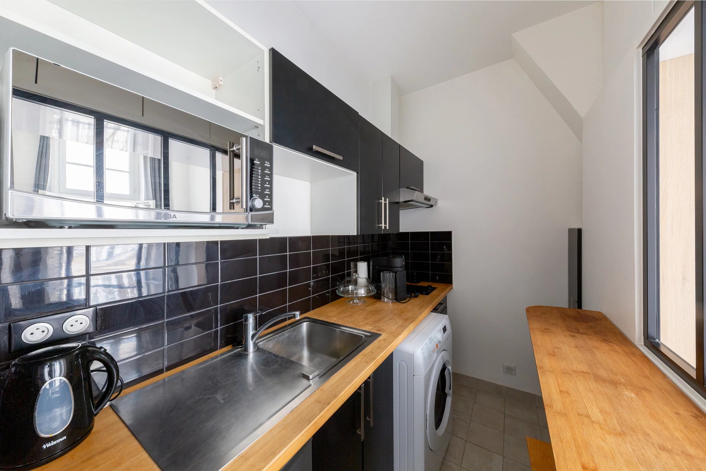 Contact :06 99 82 37 29 En plein coeur de l'Ile Saint-Louis - Charmant studio meublé de 20m². Au 2ème étage, sur belle cour arborée, studio loué meublé : Une pièce à vivre avec deux grandes fenêtres (lit-double amovible), cuisine indépendante entièrement aménagée et équipée (Réfrigérateur, plaques vitro, four combiné, micro-onde, lave-linge), salle de douche avec WC. Parquet ancien et 3,50 m de hauteur sous plafond. Prestations de grandes qualités. Uniquement disponible en résidence secondaire ou bail code civil. Honoraires d'agence : 8% du loyer annuel TTC. Contact :06 99 82 37 29