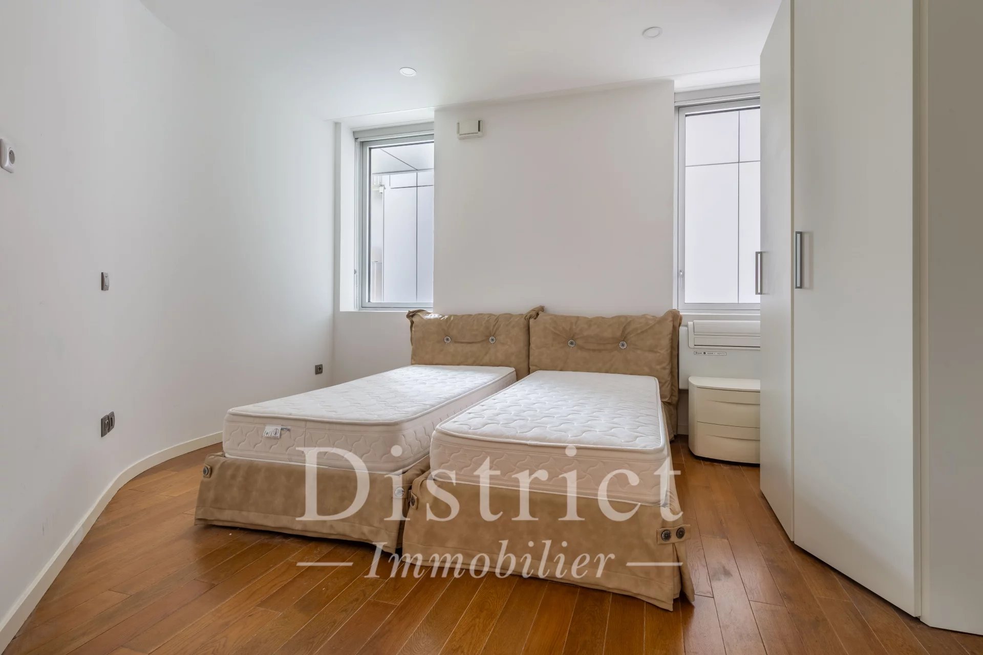 Sully Morland - Quai Henri IV. Exclusivité. Dans l'immeuble de grand standing "nouvelle Vague" construit par Altarea-Cogedim en 2015, appartement de deux pièces de 56m² au 4ème étage avec ascenseur, en parfait état. Il comprend : entrée, chambre de 14m² sur cour et séjour de 19m² sur jardin avec un large balcon. Chaque pièce dispose d'une salle d'eau, de toilettes, et d'une kitchenette. L'ensemble peut être divisé en 2 studios avec entrée commune, ou être rattaché à un 3 pièces de 89m² au 5ème étage, pour former un duplex totalisant 145m². Une cave complète ce bien d'exception, et il est possible d'acquérir un parking en sus du prix (un second pour le 5ème étage). Climatisation réversible. Immeuble sécurisé et gardienné. Le groupe District se compose de 5 agences idéalement situées dans les quartiers les plus prestigieux de Paris : l’Ile Saint-Louis, Saint Germain des Prés, le Champ de mars, le Triangle d’Or du 8ème et le Parc Monceau. Depuis 1997, nous vous proposons un éventail de biens sélectionnés et valorisés avec le plus grand soin ainsi qu’une offre de services haut de gamme (vente, achat, location, gestion).