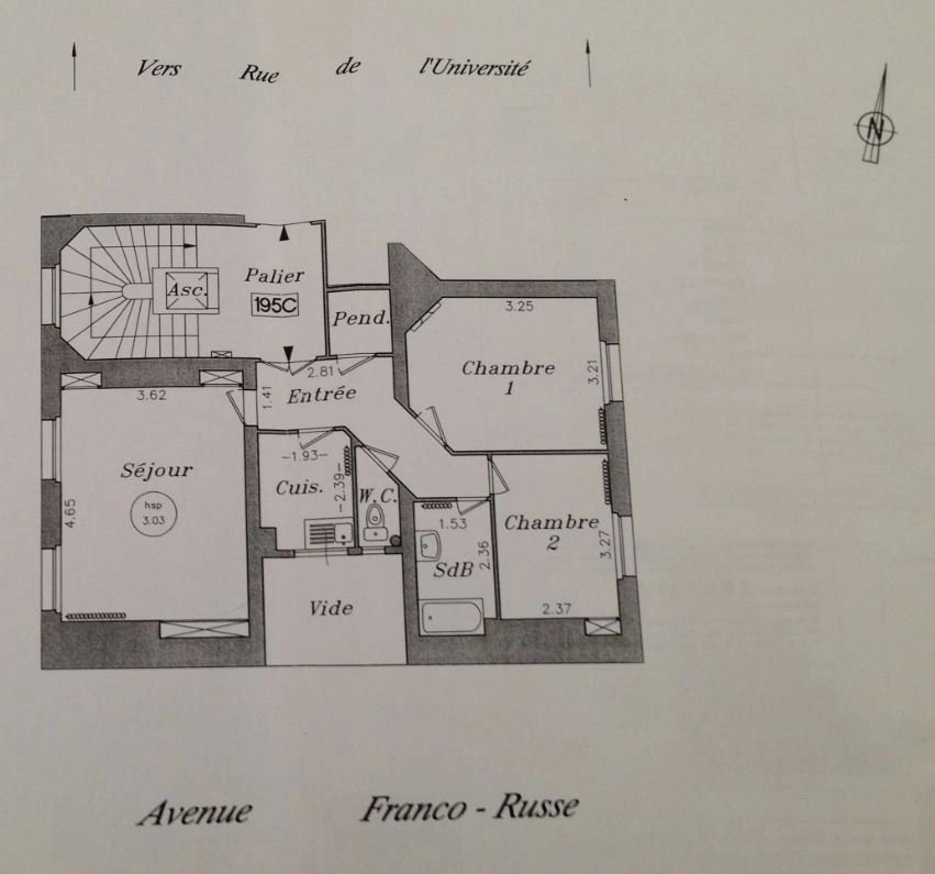 Rue de l'Université / Face au jardin du Musée du Quai Branly - Superbe 3 pièces de 56m² loué vide.
