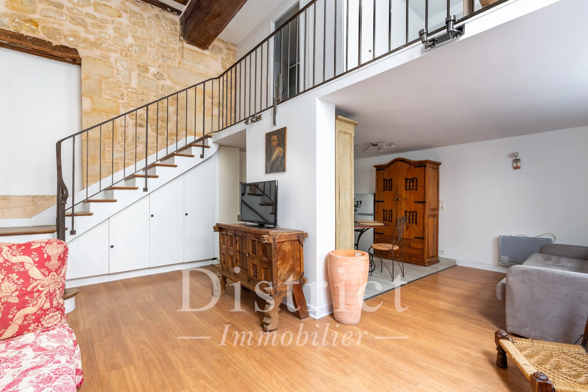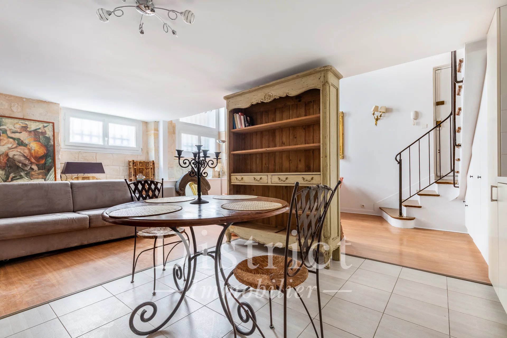Au cœur de l’Île Saint-Louis, découvrez ce charmant appartement original et fonctionnel de 50,67 m² loi Carrez (57 m² au sol). Situé en rez-de-chaussée, ce bien se compose d’une entrée, d’un agréable séjour / salle à manger avec cuisine ouverte, ainsi que d’une chambre en mezzanine accompagnée de sa salle d’eau avec WC. Cet appartement en bon état séduit par son cachet typique de l’Île Saint-Louis, avec notamment une belle hauteur sous plafond avec poutres peintes sur une partie du bien. Un bien idéal pour les amateurs de lieux de vie atypiques au cœur d’un quartier historique très prisé. Honoraires charge acquéreur.