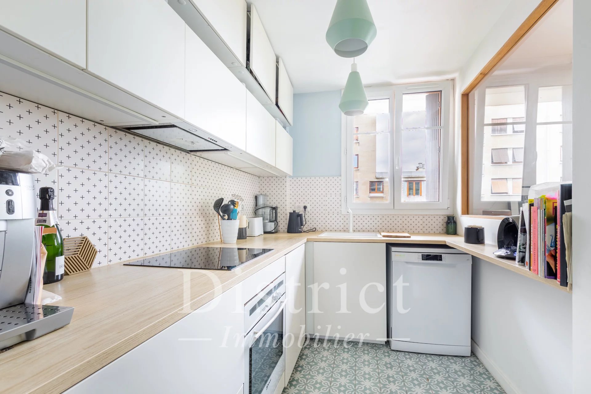 Asnières. Proche Gare(L), cinéma, la Seine et Lavallois-Perret. Au 3ème étage avec ascenseur d'une copropriété au calme, appartement de 74m² avec balcon. Il se compose d'une entrée avec placards intégrés, un double séjour orienté nord-ouest donnant sur balcon avec vue dégagée, cuisine aménagée et équipée donnant sur séjour (desserte actuellement vitrée), toilettes indépendantes avec vasque, salle de bains, deux chambres dont une avec une possible salle de douche (actuellement en buanderie). Nombreux rangements. Cave. Possibilité achat Box dans la copropriété. Gare, commerces, écoles et services à proximité.