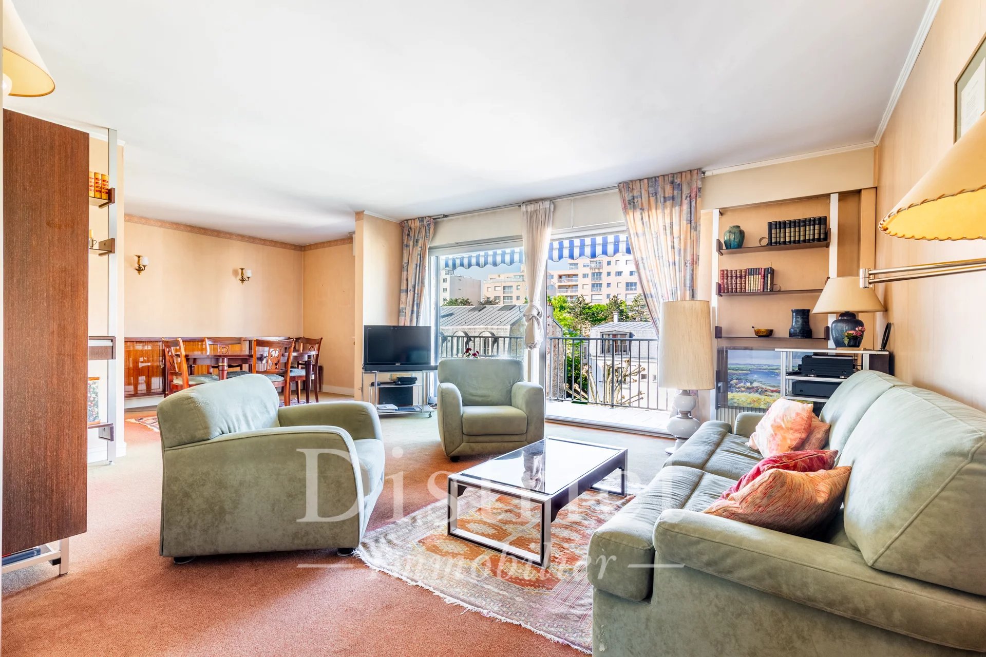 Asnières - Gare Au sein d'une copropriété de standing des années 70, avec jardin, au calme, bel appartement 4 pièces d'une surface Carrez de 86m² disposé comme suit: Entrée avec rangement, double séjour donnant sur terrasse avec vues dégagées, cuisine indépendante, 2 chambres avec terrasse et vues dégagées, salle de bains, salle d'eau, toilettes, dégagements et rangements. Plan modulable (3ème chambre possible). Au calme et lumineux avec une double exposition (Sud-Ouest / Nord-est). Une cave complète ce bien. Travaux à prévoir. Possibilité acquisition Double box en supplément. A deux pas de la gare, des commerces, cinéma, restaurants...