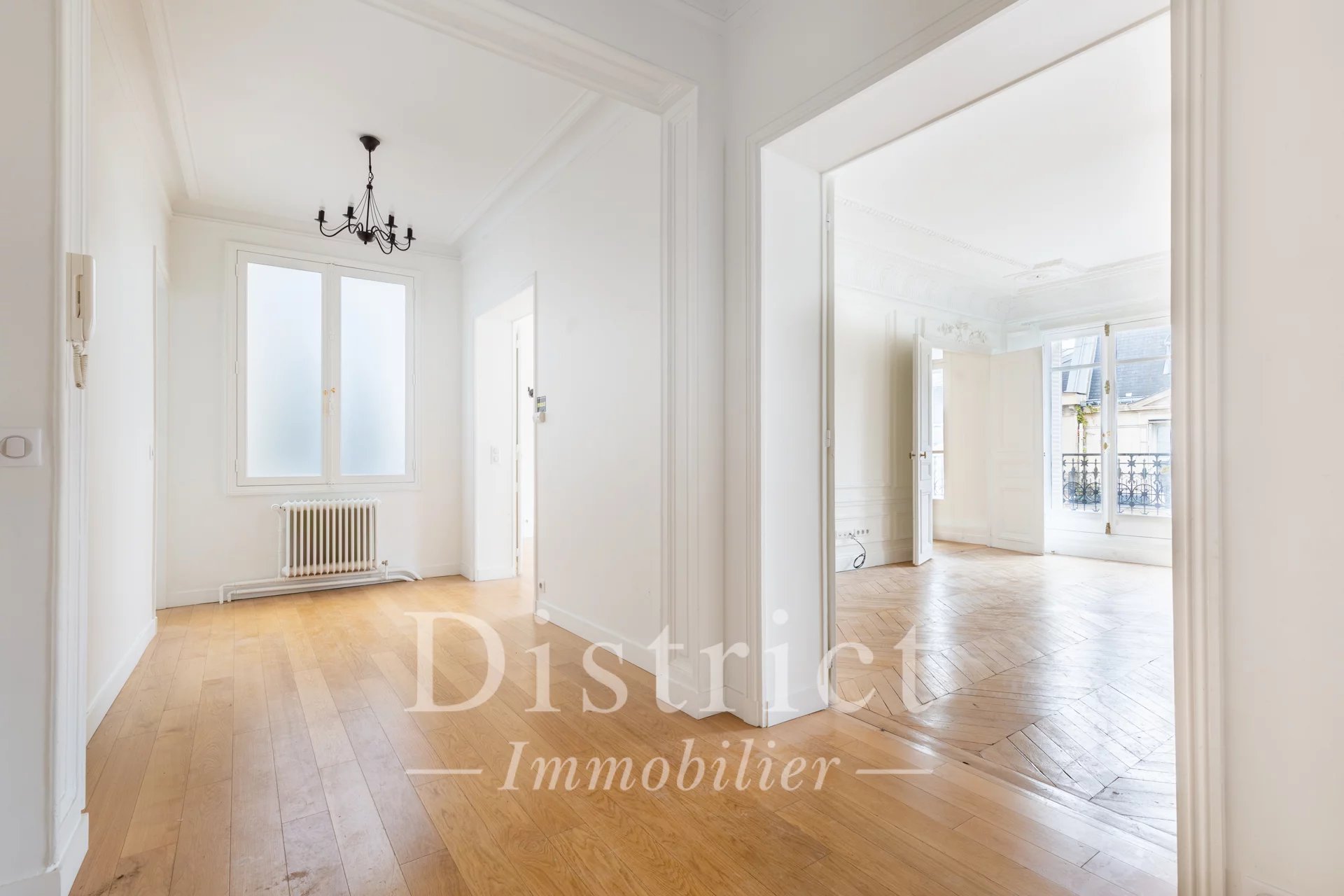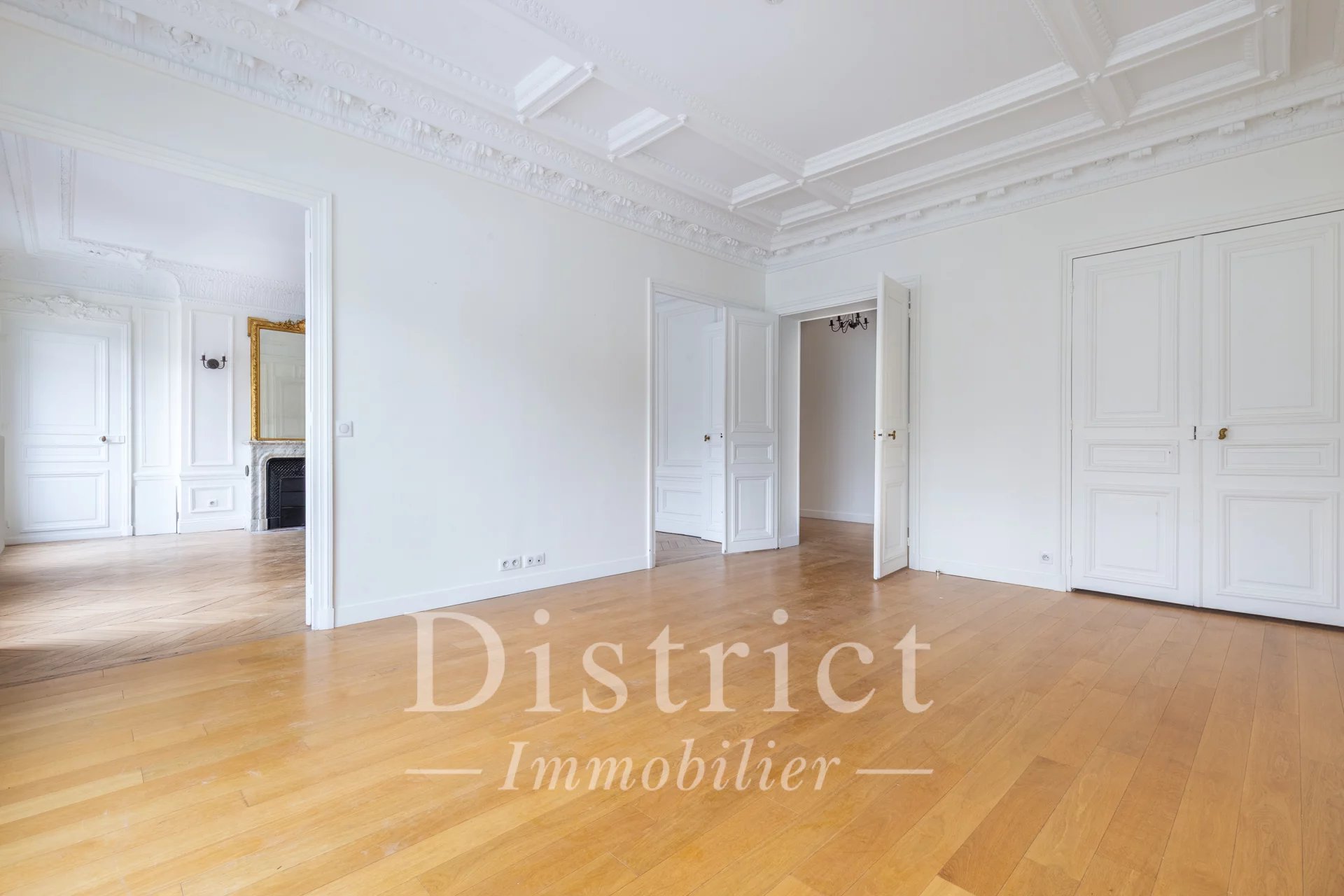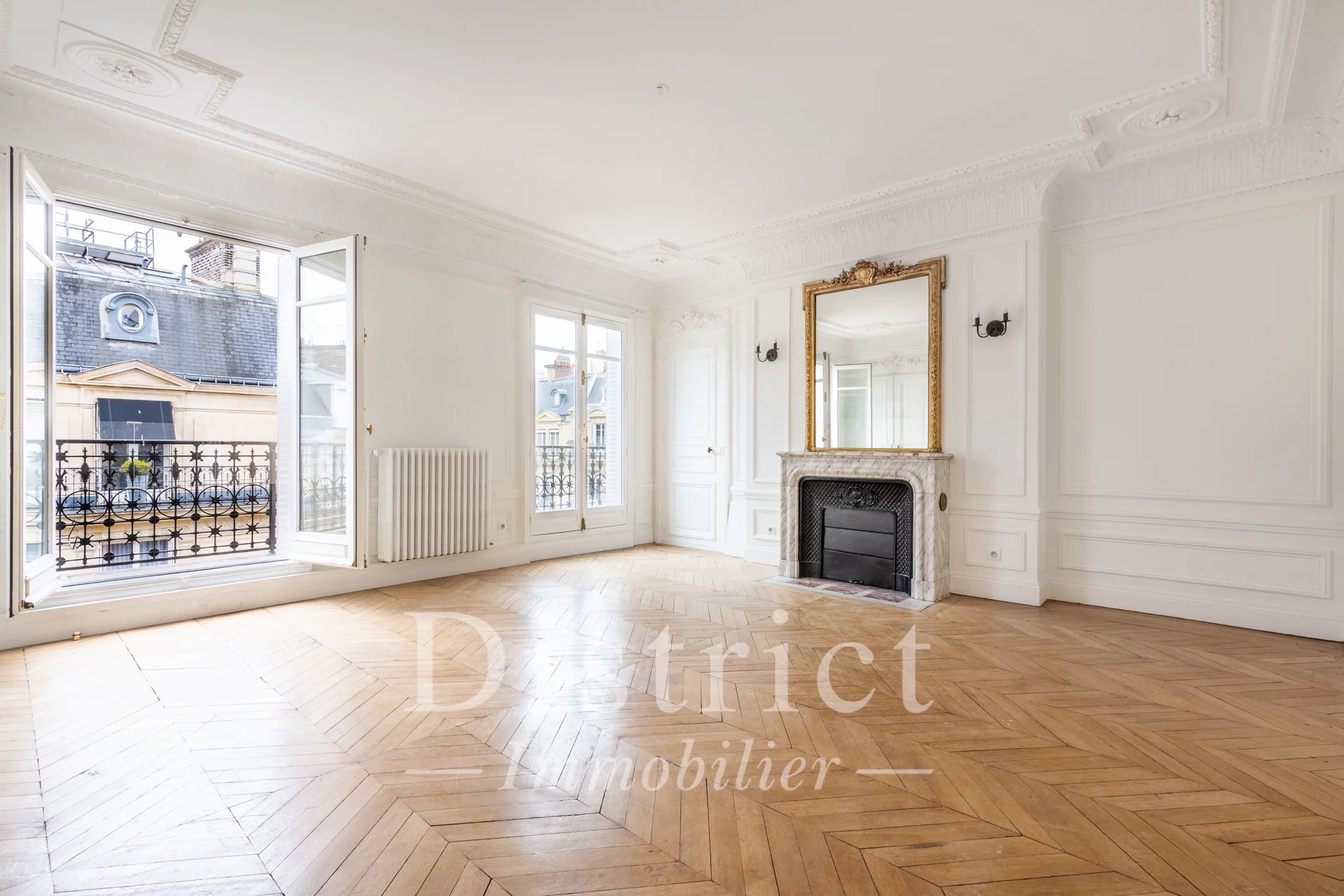 In the heart of the Golden Triangle, right next to Avenue Montaigne, District Immobilier V offers you this exceptional 151m² apartment on the 5th floor with elevator and balconies of a magnificent, fully renovated Haussmann building! The apartment comprises an entrance gallery, a living room, a dining room, a kitchen/dining room, three bedrooms (two with dressing rooms), a bathroom with WC, and a shower room. Separate WC. Facing south-west, it benefits from unobstructed views, a long balcony and exceptional luminosity. Parquet flooring, moldings and fireplaces. Cellar. Elevator. Live-in janitor. This rare property is in need of renovation. Unobstructed view.
