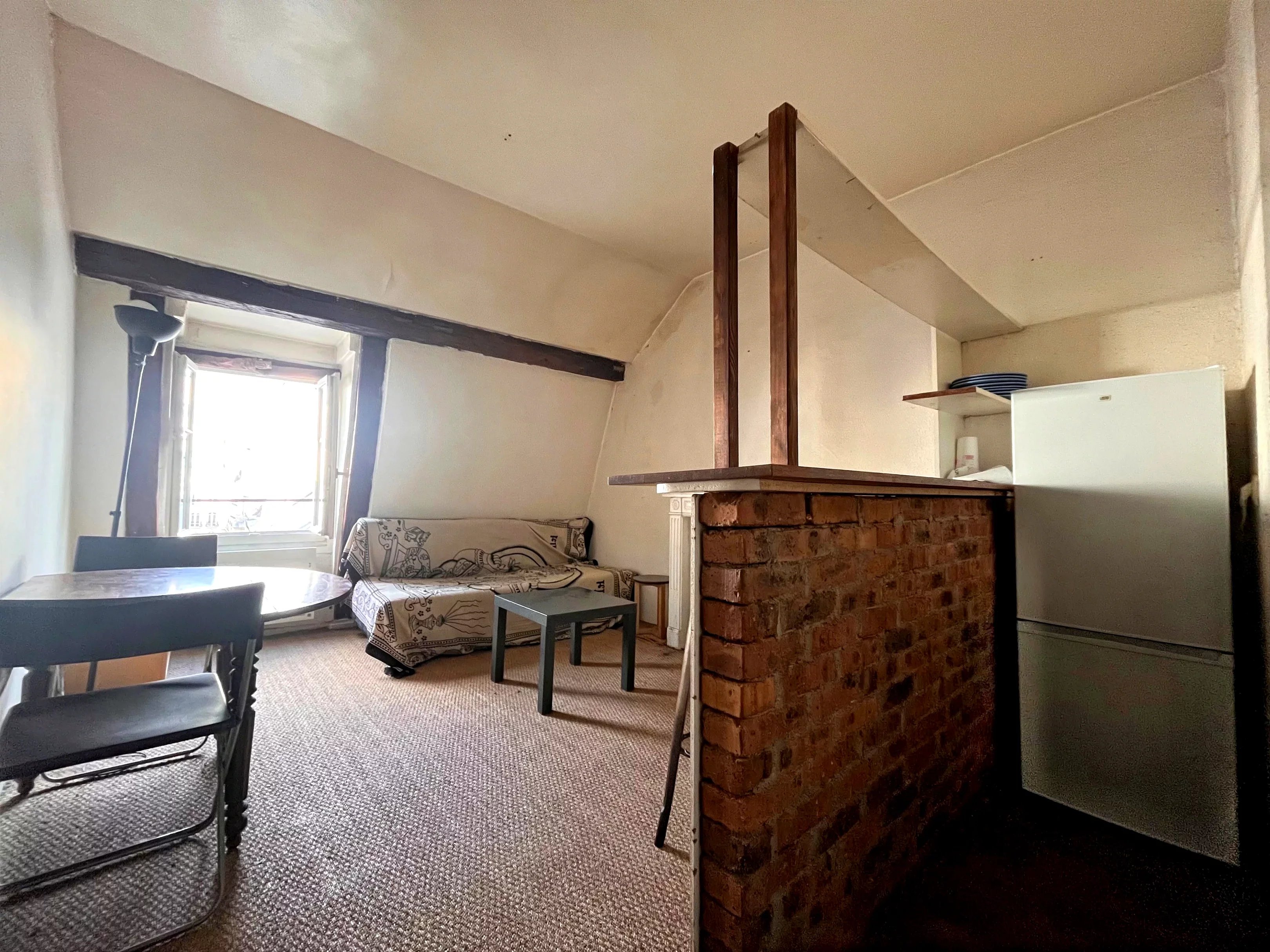 Located on the top floor of a well-maintained old building, this apartment also benefits from an exceptional location in the heart of the 6th arrondissement, close to the lively cafés, theaters and bookstores that make the district so charming! This 2-room apartment with a floor area of 43m² (34 m² Loi Carrez) is in need of renovation. The living space, bathed in natural light, is comfortable and offers lovely unobstructed views. It comprises a small entrance hall, a living room with kitchen, a bedroom, a bathroom and a toilet. Bike storage in the building. A cellar completes this property.