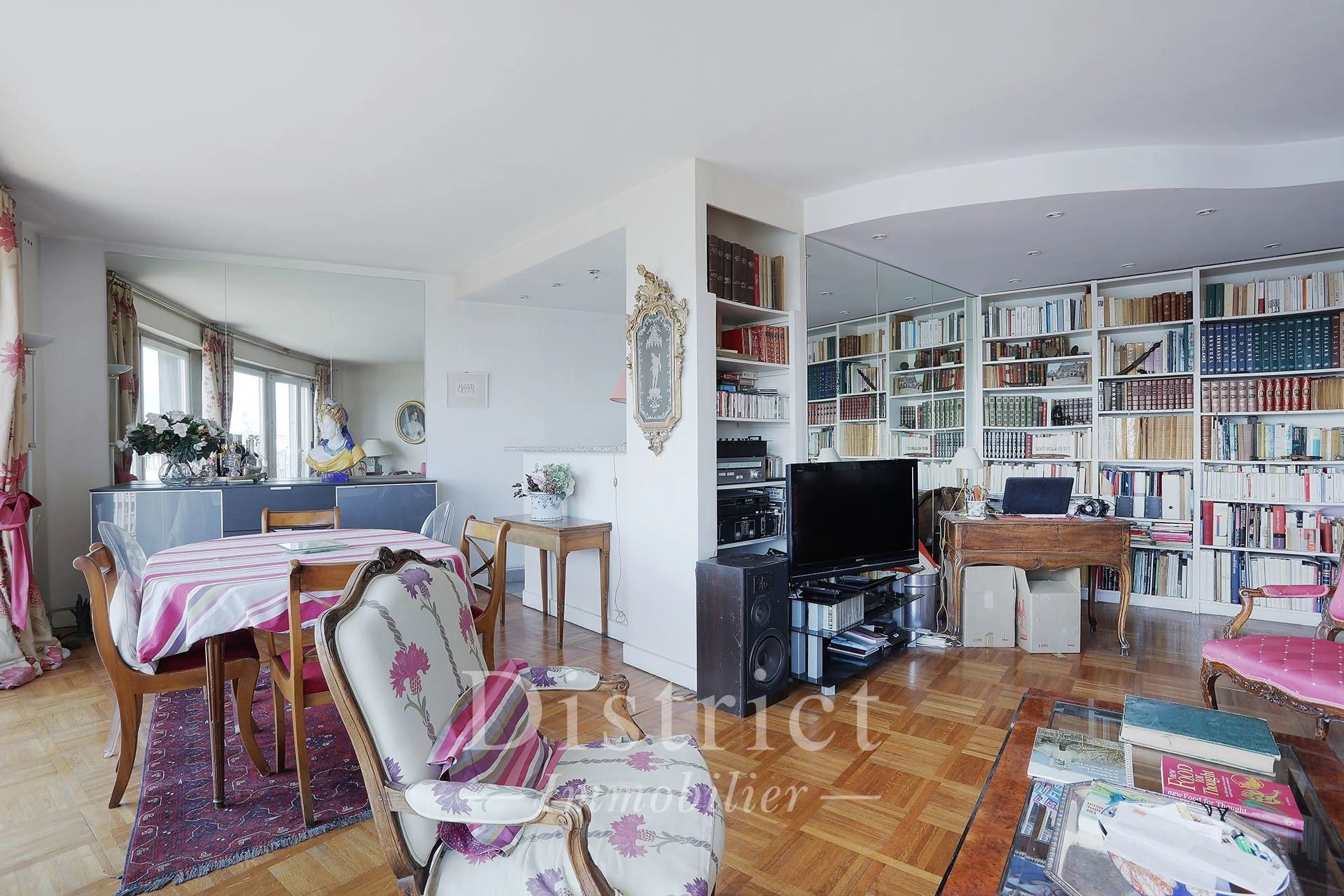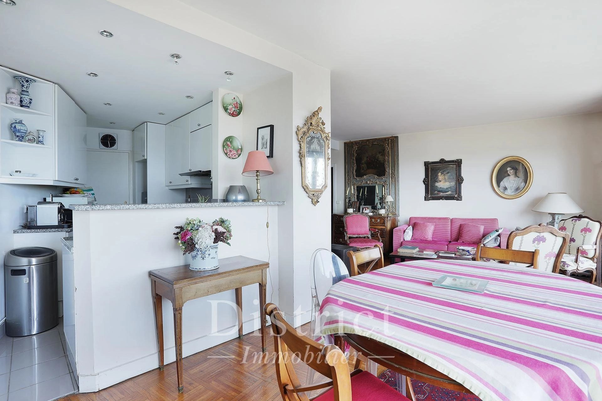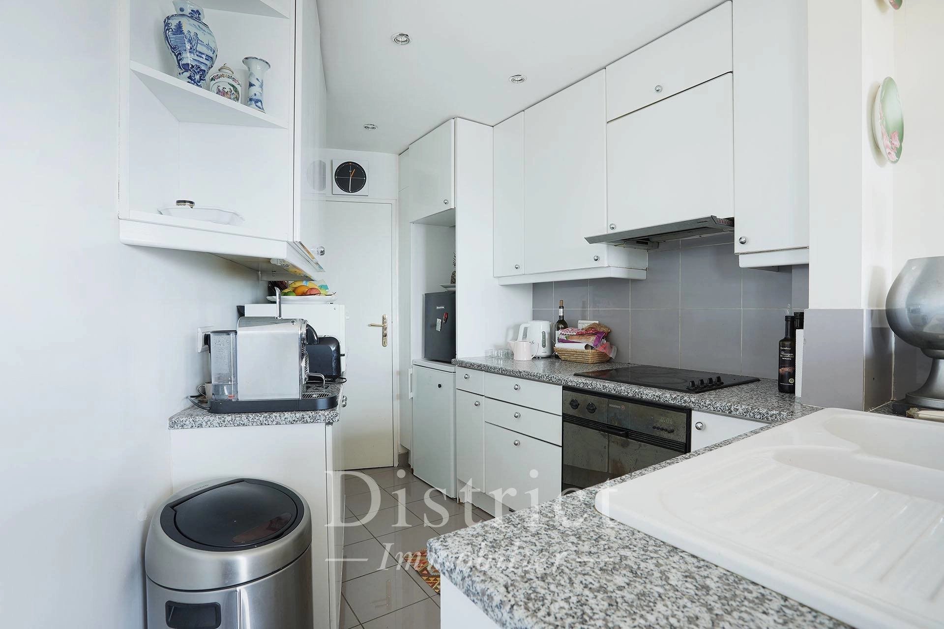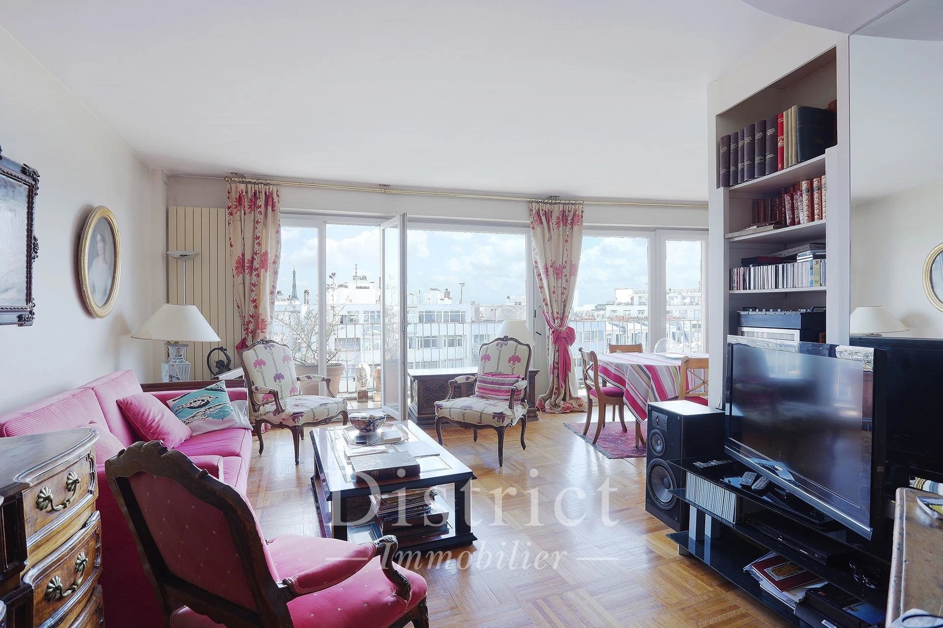Général Delestraint / Exelmans. This floor through apartment on the 9th floor of a luxurious mid 20th century residence offers 84.41 sqm of living space as defined by the Carrez Law. It includes a living/reception room and dining room opening onto an east-facing balcony enjoying an exceptional view of the capital, a fitted and equipped semi open-plan kitchen, two bedrooms (one with a balcony enjoying an open view), a spacious shower room and a separate toilet. With a walk-in closet and fitted cupboards. Cellar. A peaceful and sunny apartment in a prime location. The District group has 5 agencies in prime locations in the capital’s most prestigious neighbourhoods : Ile Saint Louis, Saint Germain des Prés, Champ de Mars, 8th District Golden Triangle, and Parc Monceau. Since 1997, we have been managing a carefully selected portfolio and offering the best assets on the market. Our services include the sale, acquisition, rental and management of real estate assets.